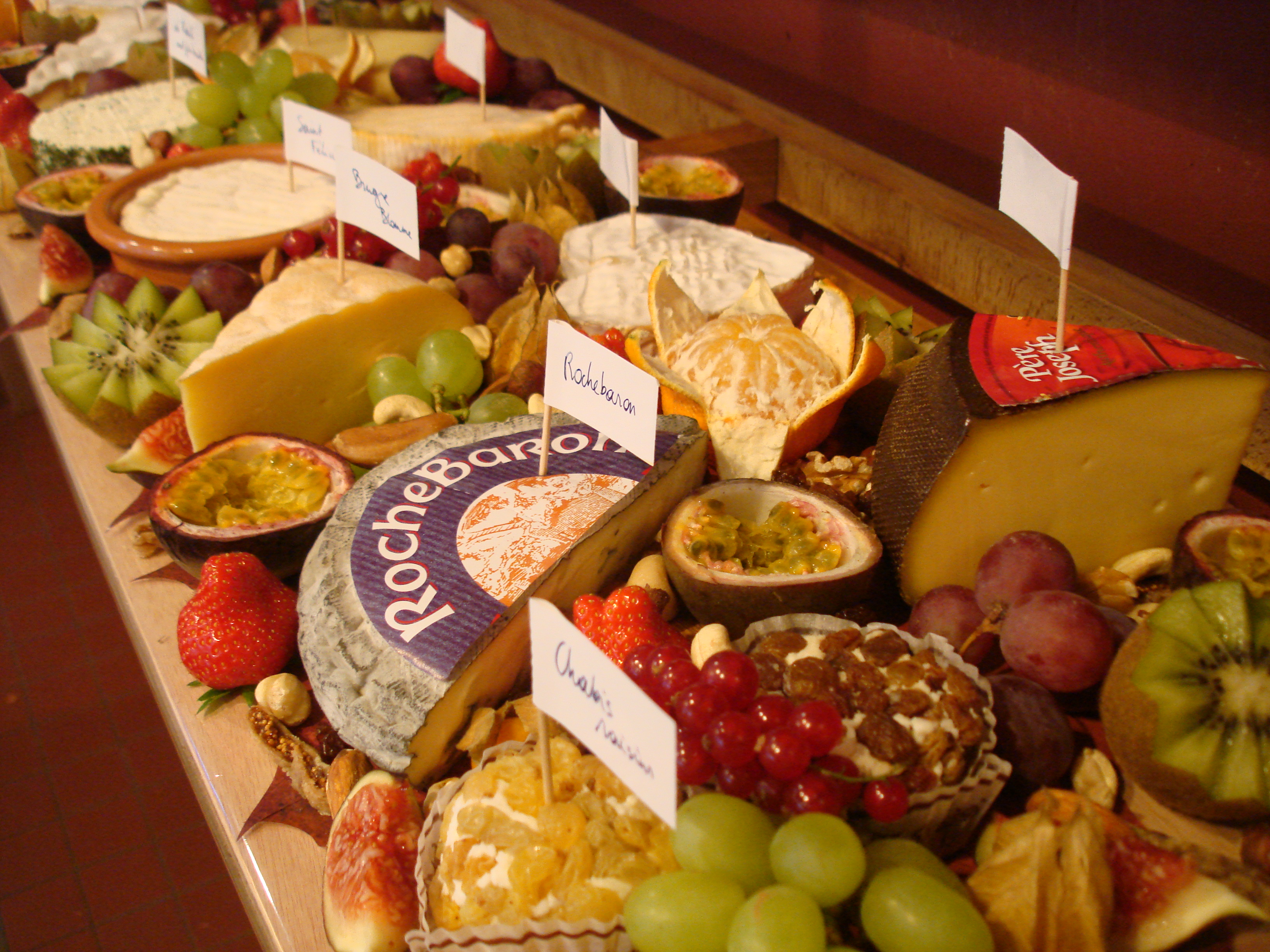 We voorzien 300gr kaas uit een ruim assortiment naar de mogelijkheden volgens seizoen De houten plank wordt afgewerkt met noten en fruit Assortiment zachte broodjes en stokbrood